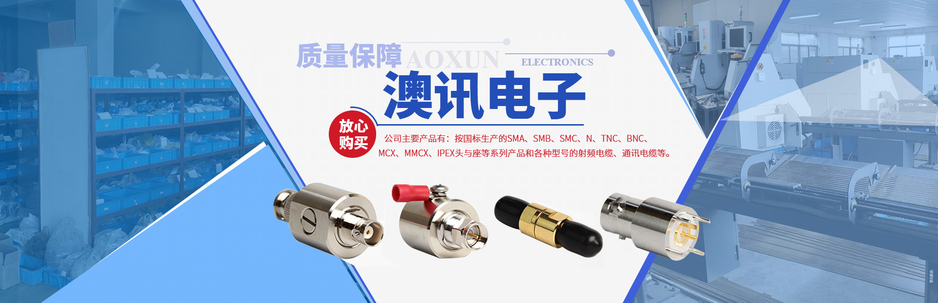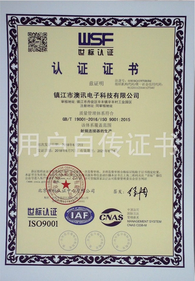 鎮(zhèn)江市澳訊電子科技有限公司,占地面積5000平方米,現(xiàn)有員工近百名,各類技術(shù)人員占15%。我公司專業(yè)從事射頻同軸連接器的設(shè)計(jì)、研制、開(kāi)發(fā)、生產(chǎn)、銷售。